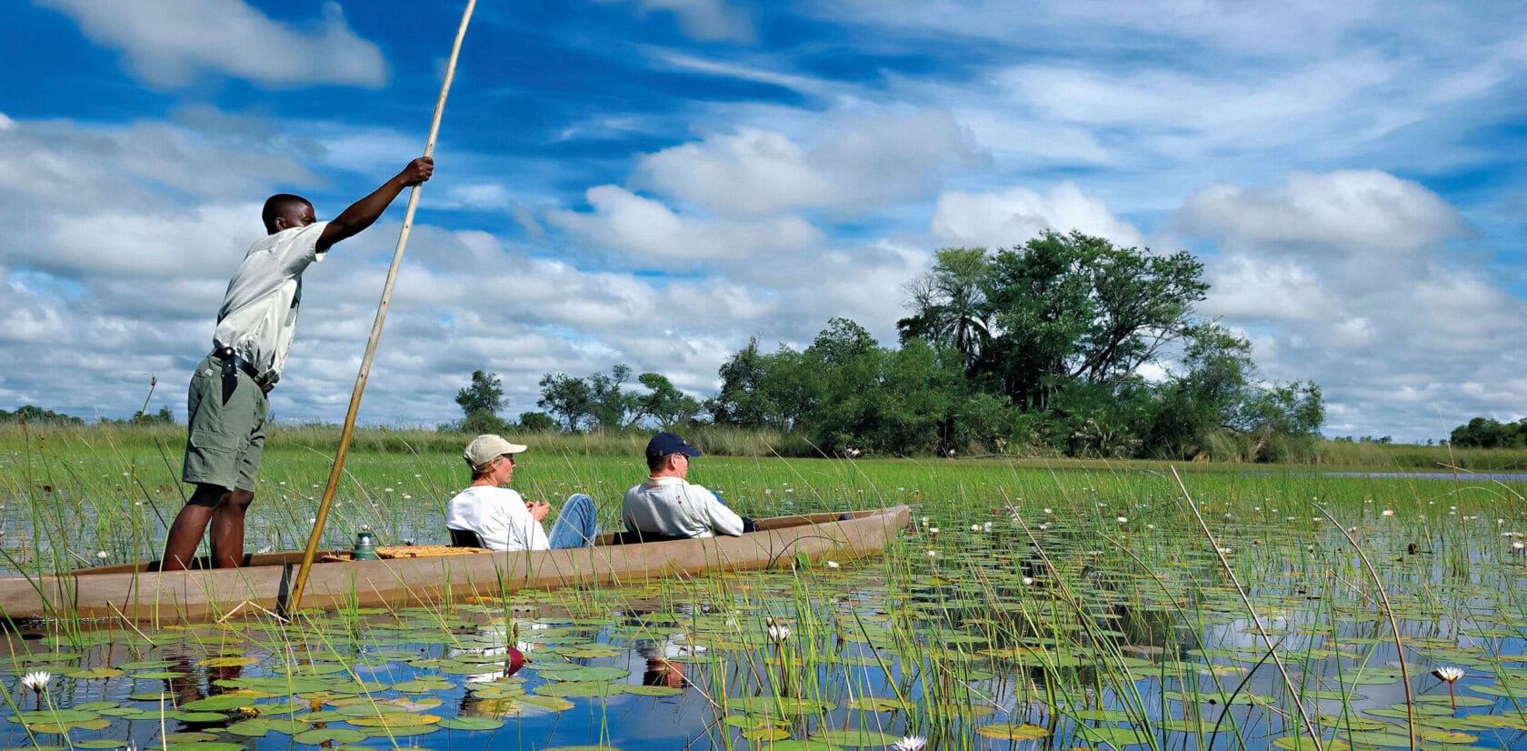 The 800-mile-long Okavango is “the river that never finds the sea,” disappearing into a remarkable maze of lagoons and channels to create the Okavango Delta. We’ll take a scenic boat ride to our next setting: the remote western corner of the Delta, the perfect place to explore on foot and by motorboat and mokoro (a dugout canoe navigated by a skilled poler). We should see bushbucks, a rainbow of birdlife, the shy sitatungas and semi-aquatic lechwe antelopes, and perhaps even buffalos and elephants. We’ll appreciate the calm solitude of this quintessential Delta setting.