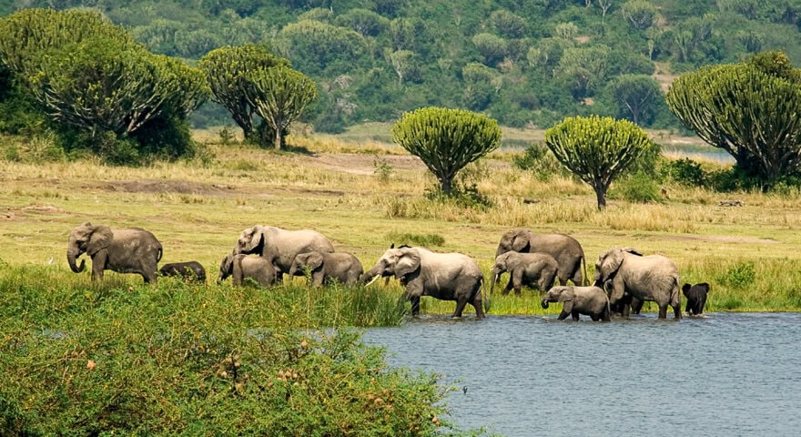 Head north through lush countryside to Murchison Falls, Uganda's largest and first national park (established in 1926). The park is home to 76 species of mammals and an astounding 451 bird species, including the rare and bizarre-looking shoebill (a “must-see” for birdwatchers). Murchison Falls National Park is the best place in Uganda (and maybe in Africa) to see this huge, prehistoric-looking bird, which stands over four feet tall with a seven-foot wingspan. En route to Murchison Falls, you will stop at the Ziwa Rhino Sanctuary and learn about its efforts to combat poaching. In addition to rhinos, the sanctuary is home to approximately 20 other species of wildlife and 300 different bird species. In Murchison Falls itself, four of the Big Five can be found—lion, leopard, buffalo, and elephant (no rhino). There are huge herds of buffalo and elephant and a healthy population of leopard and lion. The recent Great Elephant Census noted that Uganda is one of the few bright spots for elephants on the continent. Elephant populations in Uganda have increased 600% to more than 5,000 individuals from fewer than 800 that survived the poaching crisis of the 1970s. Jackson's hartebeest, bushbuck, Uganda kob, waterbuck, and warthog are among the other residents. Murchison Falls is also one of only three parks in Uganda with giraffe. Nearly half of the wild endangered Nubian giraffe (formerly known as the Rothschild's giraffe), a subspecies of the northern giraffe, live in the park, with only 5,200 individuals remaining. The acclaimed Giraffe Conservation Foundation is active here, and has successfully translocated nearly 40 giraffe across the Nile River to the south side of the park over the last two years to help support this endangered species. Overnight at Twiga Safari Lodge. Tonight you'll savor your first dining experience in the bush, preceded by a welcoming drink...BLD