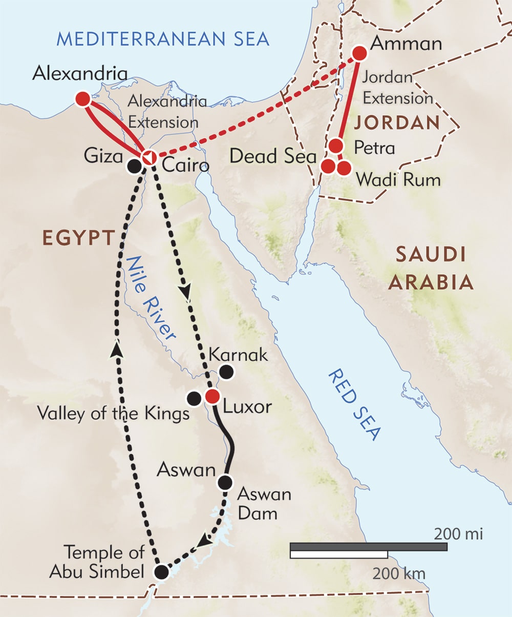 We fly to Luxor, where the all-powerful Theban pharaohs built elaborate monuments in the valley of the Nile. We’ll walk amid the stone columns of the stupendous Temple of Karnak and visit graceful Luxor Temple. In the Valley of the Kings, we explore magnificent tombs, including the grand Temple of Hatshepsut, Egypt’s most famous female pharaoh. Our five-day sail aboard our dahabiya, with its air-conditioned cabins, gives us access to lesser-visited sites, as well as famed Nile-side temples including Edfu, dedicated to the falcon-headed god, Horus. One evening, we enjoy a candlelit barbecue at Maniha Island, and on another, we moor at Cobania Island for a visit with villagers. At Aswan, we explore romantic Philae Temple, a pilgrimage site for thousands of years.