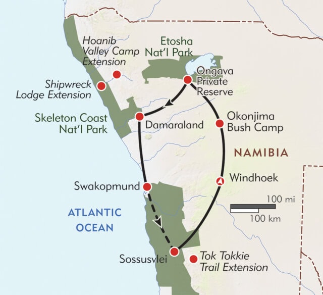 Although this is not a particularly rigorous trip, we still recommend you undertake a preparatory program of physical conditioning (especially if you want to climb the sand dunes in Sossusvlei, which can be quite challenging; it's also recommended for the Tok Tokkie Trail Extension). Daily walking or regular hiking, jogging, and stair-climbing are excellent preparatory exercises.