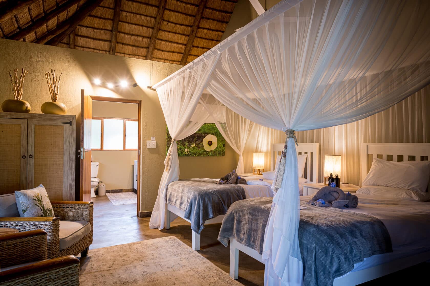 The lodges on this program offer excellent game viewing year round. Game viewing is often at its best from the end of March to the end of August, the drier season, when vegetation becomes sparser, causing greater animal congregations around waterholes. Most rainfall occurs usually between December and February in the form of afternoon or evening thunderstorms. In general, there is a warm climate with cool nights in “winter” (March-August in the Southern Hemisphere).