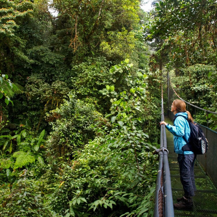An active adventure awaits in this tropical world of cloud forests, waterfalls, and pristine beaches. Walking hanging bridges in Arenal Volcano National Park is one of the highlights, along with ziplining under rainforest canopy, boating through tranquil blackwater canals, and spotting wildlife like toucans, monkeys, and tree frogs.