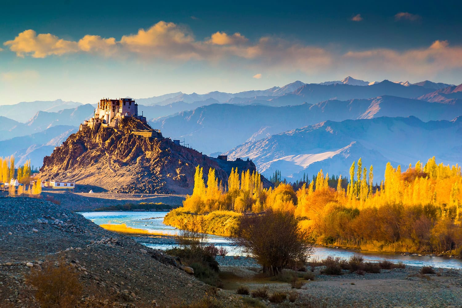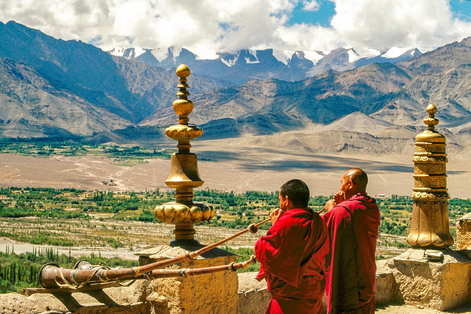 Fly to Leh, a former trans-Himalayan trading post set at 11,500 feet in the upper Indus Valley. Witness a prayer ceremony at Thikse Monastery, explore the lanes of upper Leh, watch sunset from Shanti Stupa, and visit 17th century Hemis Monastery, with a hike up to the cave-hermitage of Gotsang.