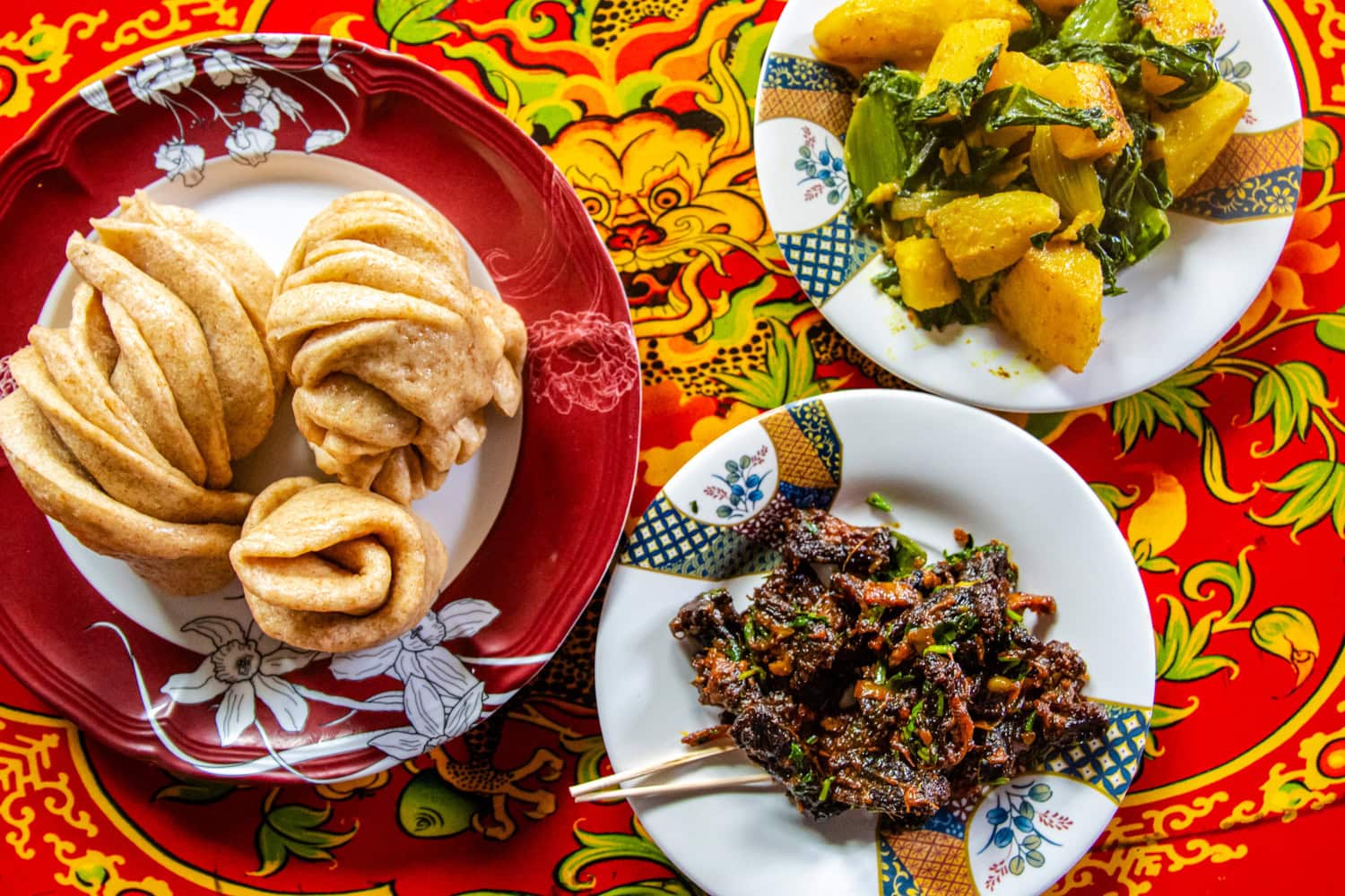 Tibetan cuisine is based on noodles with simple vegetables and meat, along with momos (similar to Chinese steamed dumplings) with meat or vegetables. In Kathmandu, there is a wide variety of international cuisine available, along with Nepali cuisine, which has Indian and Tibetan influences. Bhutan’s cuisine is generally based on basic rice with stir-fry and stew options.