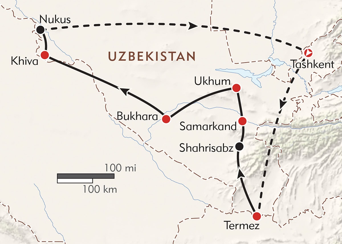 We visit Tashkent, the country’s modern metropolis, then fly to off-the-beaten-path Termez to discover its unique Buddhist archaeological treasures, including UNESCO-listed Fayaz-Tepe, an ancient rock-cut monastery.