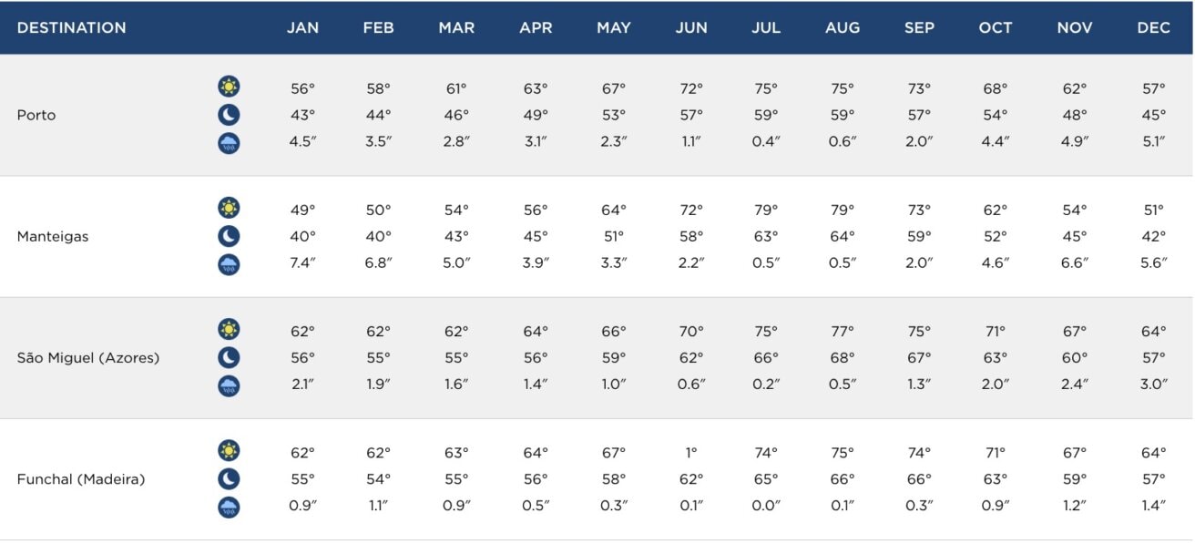 While there’s no bad time to go to Portugal, the spring, summer, and fall are the best times for exploration, and particularly for hiking. The quiet winter months are a great time to experience Portugal’s cultural capitals of Lisbon, Porto, and Lamego, which you can discover on relaxing Douro River cruises.