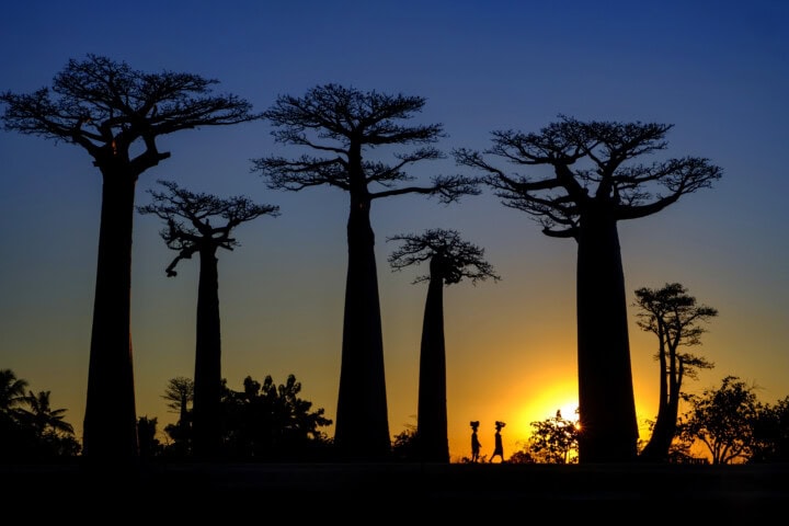 Flying by private charter to seaside Morondava, we visit the Avenue of the Baobabs to plant a seedling and sip Malagasy sundowners as the sun sets over these majestic natural monuments. In the Menabe Antimena protected area, we look for the elusive cat-like fossa, a host of endemic chameleons, and primates including Verreaux’s sifaka.