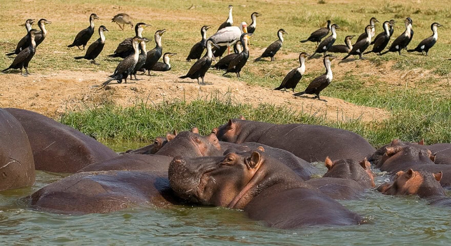 In the afternoon, a 3-hour private boat ride on the Nile brings you to the base of the falls (this is along the same stretch of river where The African Queen, starring Humphrey Bogart and Katharine Hepburn, was filmed in 1951). Cruising down the Nile provides great wildlife viewing as the animals come down to the water's edge to drink. The Nile supports the largest concentration of hippos and crocodiles in Africa—you may see hippos soaking in the deeper channels and the alpha predators lounging on the riverbank—and a dazzling variety of water birds. The views of the falls as you approach by boat are breathtaking. An interesting historical and literary monument is just downstream from the falls. Overnight at Twiga Safari Lodge...BLD