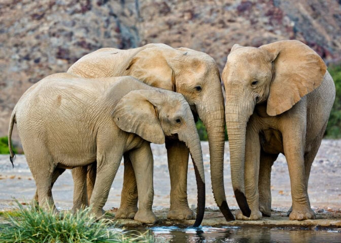 Our morning drive will more often than not reveal desert-adapted elephant, as well as stately desert-adapted giraffe, and, if we're very lucky, desert lion. Zebra, klipspringer, and kudu move freely through the mountains, and we'll find hardy herds of springbok and oryx as well as steenbok picking their way across the dust-blown landscapes. Bird watchers, keep your eyes peeled for Monteiro's hornbills or Ruppell's korhaans in the valleys and the imperious Verreaux's eagle in the mountains. After a full morning of exploring this remarkable area, we head back to camp for some well-deserved down time. The afternoon will include a scenic walk or a sundowner drive. Overnight at Hoanib Valley Camp...BLD