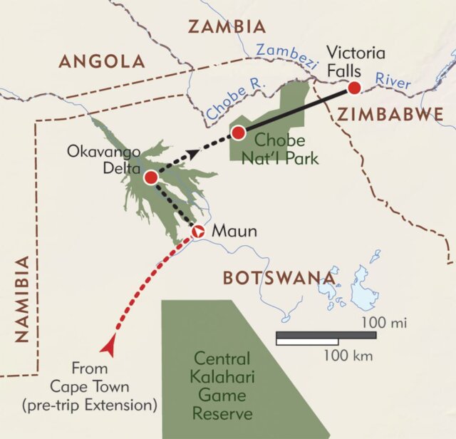 Depart: Victoria Falls, Zimbabwe, or Livingstone, Zambia