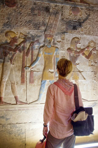 We fly to Luxor, where the all-powerful Theban pharaohs built elaborate monuments in the valley of the Nile. We’ll walk amid the stone columns of the stupendous Temple of Karnak and visit graceful Luxor Temple. In the Valley of the Kings, we explore magnificent tombs, including the grand Temple of Hatshepsut, Egypt’s most famous female pharaoh. Our five-day sail aboard our dahabiya, with its air-conditioned cabins, gives us access to lesser-visited sites, as well as famed Nile-side temples including Edfu, dedicated to the falcon-headed god, Horus. One evening, we enjoy a candlelit barbecue at Maniha Island, and on another, we moor at Cobania Island for a visit with villagers. At Aswan, we explore romantic Philae Temple, a pilgrimage site for thousands of years.