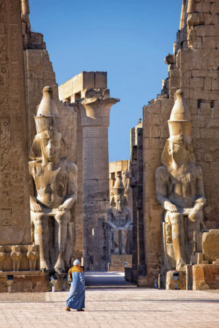 In Cairo, we witness the majesty of the Pyramids of Giza, which continue to radiate the magnificence that has awed visitors for centuries. Time permitting, we can climb inside the Great Pyramid, built by Cheops, the grand king of the Fourth Dynasty. Nearby, we’ll visit the lion-bodied Great Sphinx, carved from the bedrock of the Giza Plateau. We then visit the new Grand Egyptian Museum, now the largest archaeological museum in the world.