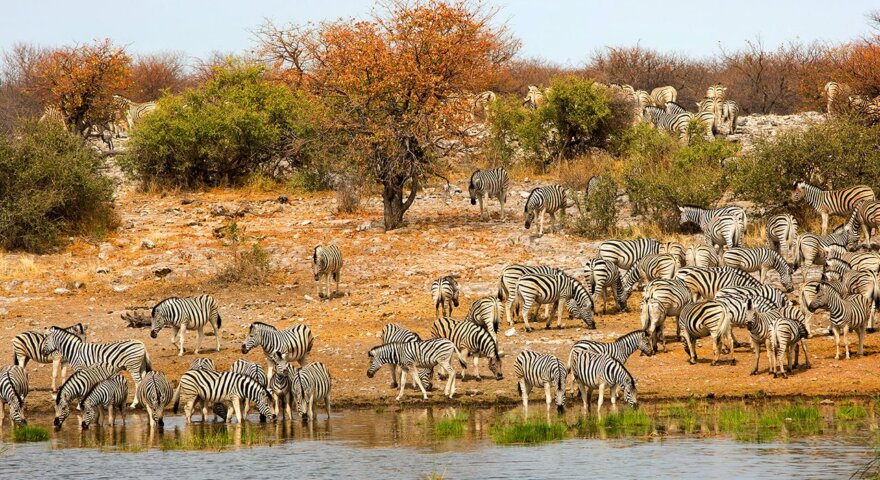 Namibia is one of the most hauntingly beautiful safari destinations in the world, brimming with astounding landscapes and rare species found nowhere else. We discover this epic land during the “green season” (January to March) as we track leopards at AfriCat and explore World Heritage-listed Etosha National Park from its less-traveled eastern gate. Heading into Namibia's far northwest, we search for desert-adapted elephants in ethereal Damaraland, then discover Kaokoland's remote Hoanib River Valley, which teems with resident desert-adapted wildlife in a vast, mountainous, and wild landscape. We'll visit a Himba settlement while we're in this luminous land and learn about their nomadic culture. Our grand finale finds us at Shipwreck Lodge, perched right on the dunes of the legendary Skeleton Coast. We enjoy all this with an expert Trip Leader who is one of Namibia's best known naturalist guides. The green season is Namibia's summer, a time of bounty, bringing the desert to life to reveal carpets of buttercup-yellow devil's-thorn flowers and swaths of yellow and pink cleomes. It is calving season for plains game such as springbok and zebra, peak birdwatching season for flocks of migratory species, and an ideal season for photography, with clear, dust-free skies and striking cloud formations. Rain is usually confined to a short and spectacular daily afternoon thundershower, which brings the plains alive with new green grass. To top it off, our journey comes at a savings of more than $1,500 per person compared with high-season safaris. Join us to explore the very best places to be during this special season!