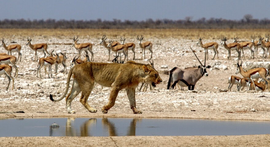 The best gameviewing is generally during the dry season, between April and October, which also corresponds to the most comfortable season for travel. Days are clear and sunny, with temperatures in the 80sF. Nighttime temperatures may drop near freezing. Only during the hot summer months from November to February does rain occur. During this season, the wildlife tends to scatter significantly, which decreases gameviewing potential, but the birdwatching is excellent.