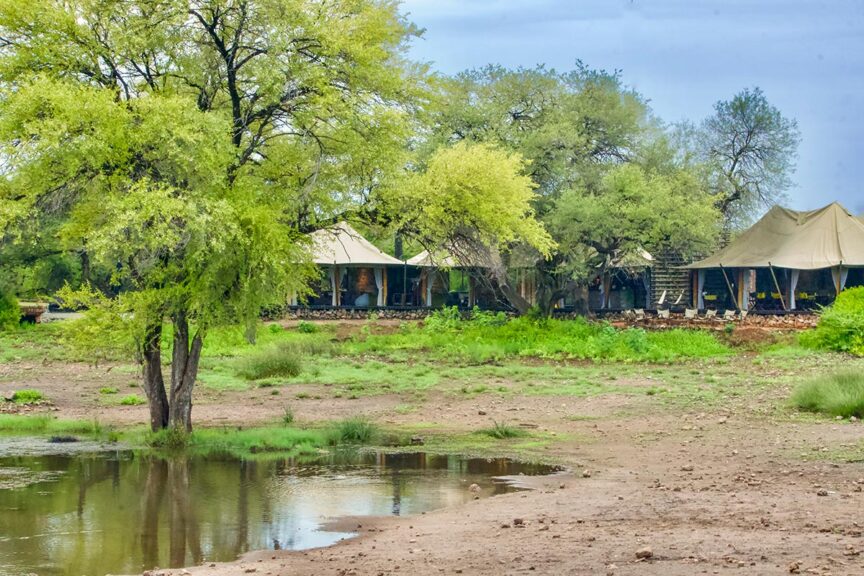 Our first stop was Onguma, a private game reserve across the road from the eastern boundary of Etosha National Park. While the central and eastern part of the park is best known due to the ancient salt pan, most people enter through the southern gate because it’s closer to Windhoek and makes more logistical sense for most safari circuits. During the green season, however, east is where you want to be, as wildlife migrates here when the rains come. Fischer’s Pan, a hotspot for migrant waterbirds—including bubblegum pink flamingos!—as well as cheetah, was a short 25-minute game drive from Onguma Tented Camp, our home for three nights.