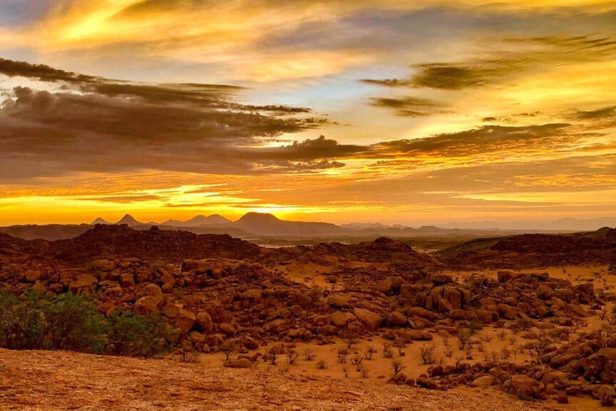 Namibia is one of the least densely populated countries in the world, with only 2.5 million people in an area twice the size of California. Social distancing comes naturally in such a vast land. All of the lodges and camps are open to the elements, with large lounge and dining areas designed to keep the fresh air flowing—a feature people take for granted until there’s a pandemic and you’re told that being indoors with strangers is the worst thing you can do.