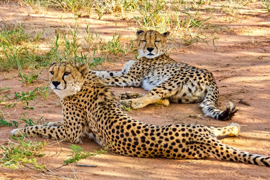 We awoke the next morning eager for another drive, this time to visit cheetah. AfriCat’s Cheetah Rehabilitation project aims to give rescued and orphaned cheetahs the opportunity to return to their natural environment as they lack experience hunting or are conditioned to captivity. Due to increased interspecific competition with leopard and hyena within the reserve, Okonjima’s cheetah are now in their own separate enclosure, and we were able to visit with two of them, Charlie and Chaplin.