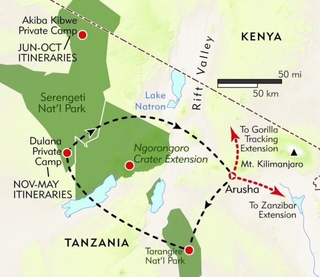 With its world-renowned game reserves, home to some of the largest concentrations of wildlife anywhere in the world, and its rich culture and welcoming people, including the legendary Maasai of the Serengeti, Tanzania is the perfect place for a fantastic family safari. We bring you to two of its world-renowned sanctuaries—Tarangire National Park, whose migrating wildlife is drawn by the permanent waters of the Tarangire River, and the famed Serengeti, where the earth's greatest gathering of terrestrial wildlife roams freely on golden savannas. Expert private guides, exciting game drives, fantastic private camps, and special activities for kids—including Swahili lessons, perfectly paced bush walks, and Maasai storytelling and jumping competitions—combine to make this the quintessential family safari. You can add extra days at each camp if you like, and post-trip, enjoy a visit to the paradisiacal island of Zanzibar, Ngorongoro Crater, Kenya's Masai Mara National Reserve, or track gorillas in Rwanda.
