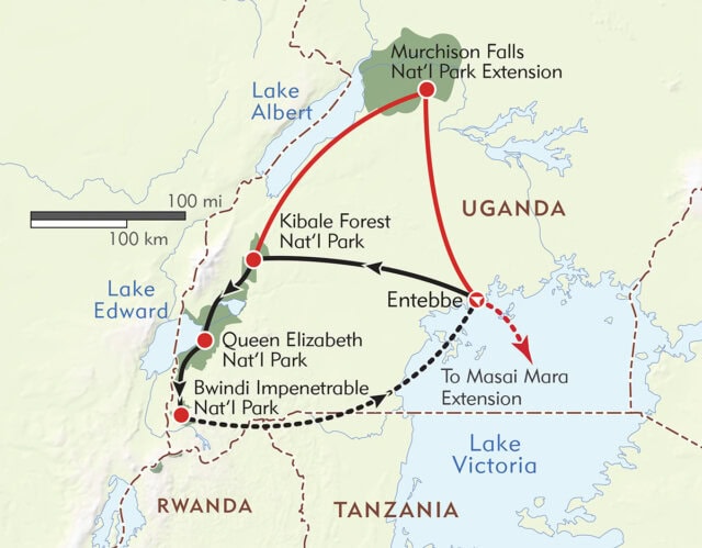 The climate in Uganda is considered “modified tropical”— similar to the equatorial climate of other East African countries like Kenya and Tanzania, but slightly modified by its altitude, which ranges from 3,500 to 4,500 feet. Daytime temperatures are usually in the 70s and 80s, and humidity is fairly high. You can expect to experience some rain during the course of the trip. Like Kenya and Tanzania, Uganda has two annual rainy seasons, one between March and May and one between October and November.
