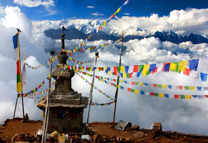 At altitudes over 10,000 feet, weather is unpredictable and the wind chill factor comes into play. Daytime temperatures at these heights can be in the 60°Fs, but also as low as the 30°s and 40°s, especially if it is windy. Temperatures drop very quickly when the sun goes down, and evening/nighttime temperatures at high altitudes often drop to around 15°F and sometimes lower. We frequently encounter sub-zero nighttime temperatures on Khumbu treks and you should anticipate chronic cold weather. Snow is not uncommon at higher elevations, and rain is always a possibility throughout the trek.