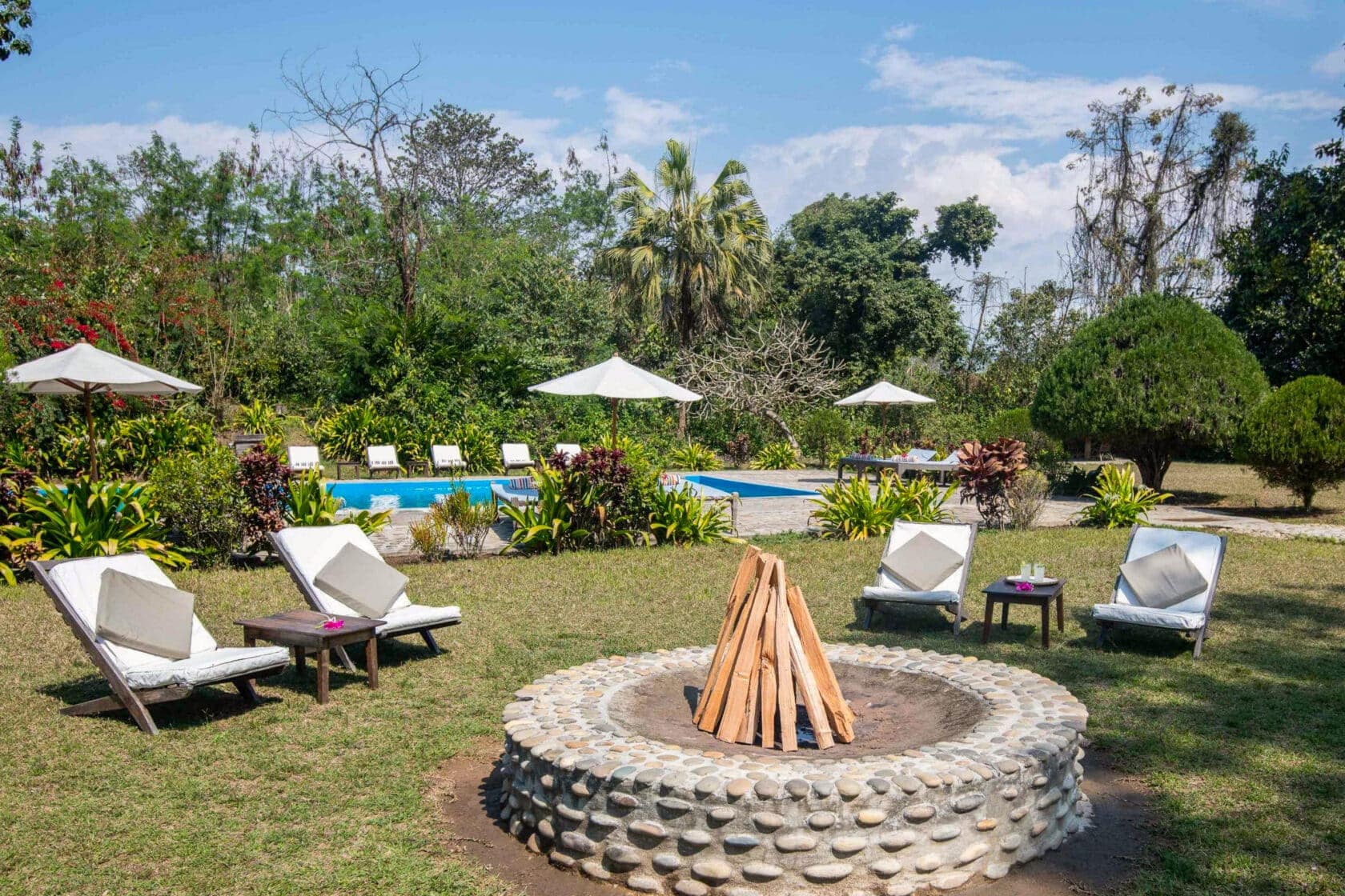 After breakfast (usually fresh fruit, yogurt, eggs, and bacon), you can choose your day's activities. Enjoy a gentle boating safari down the peaceful Narayani River, keeping an eye out for marsh muggers or the endangered gharial crocodile resting on the banks. You can also stretch your legs on a jungle walk, visit the Tiger Tops-Swiss Air Primary School, one of Tharu Lodge's sites of community engagement, or take a walk into the surrounding villages with a local guide to experience rural life. A Nepali-style lunch will be served back at the lodge. This evening, the dancing troupe from the village will come and dance before dinner in their brightly colored costumes...BLD